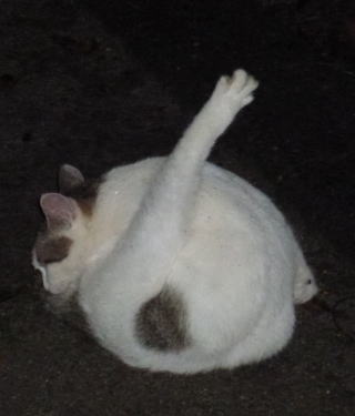 3.美脚をあげて毛繕いをする百合ちゃん。