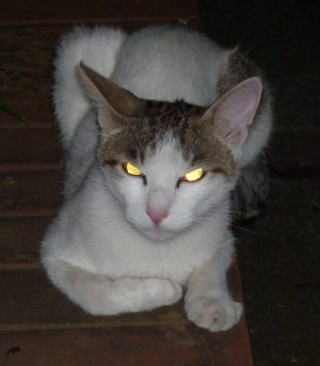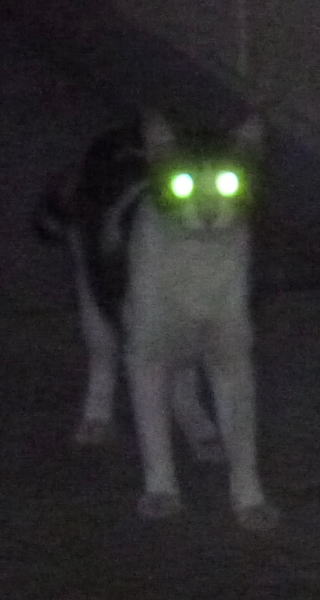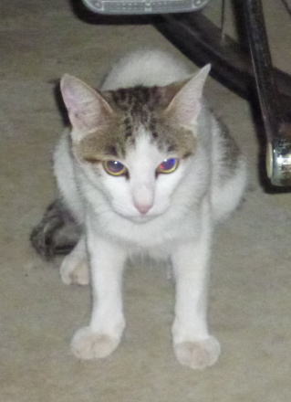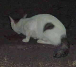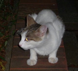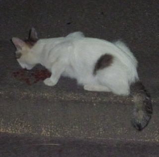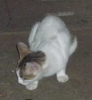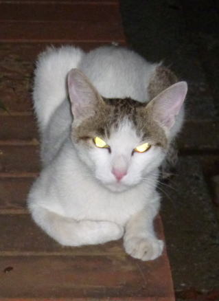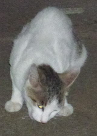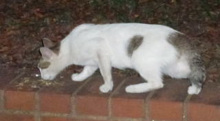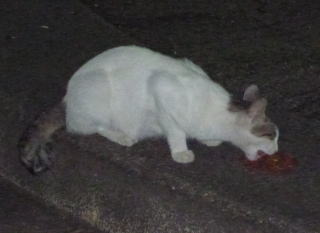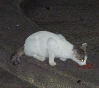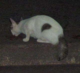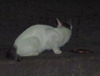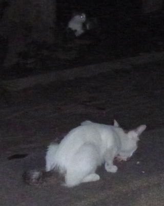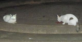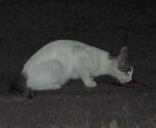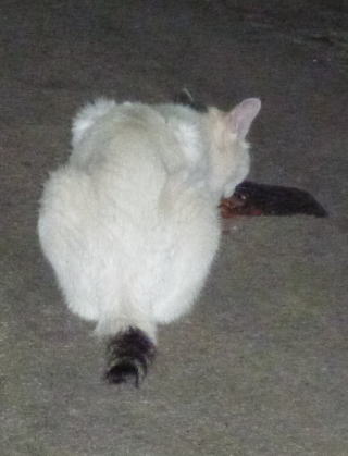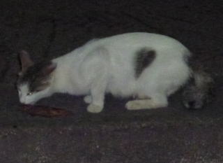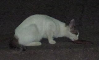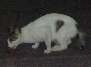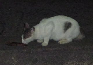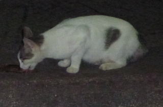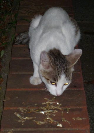31.「いつも白三毛やサバ虎白にご飯を横取りされているから今夜はメグちゃんの煮干しを横取りしちゃった」。