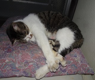 2.座布団三枚の上で眠る鼻キズ子のニケちゃん。